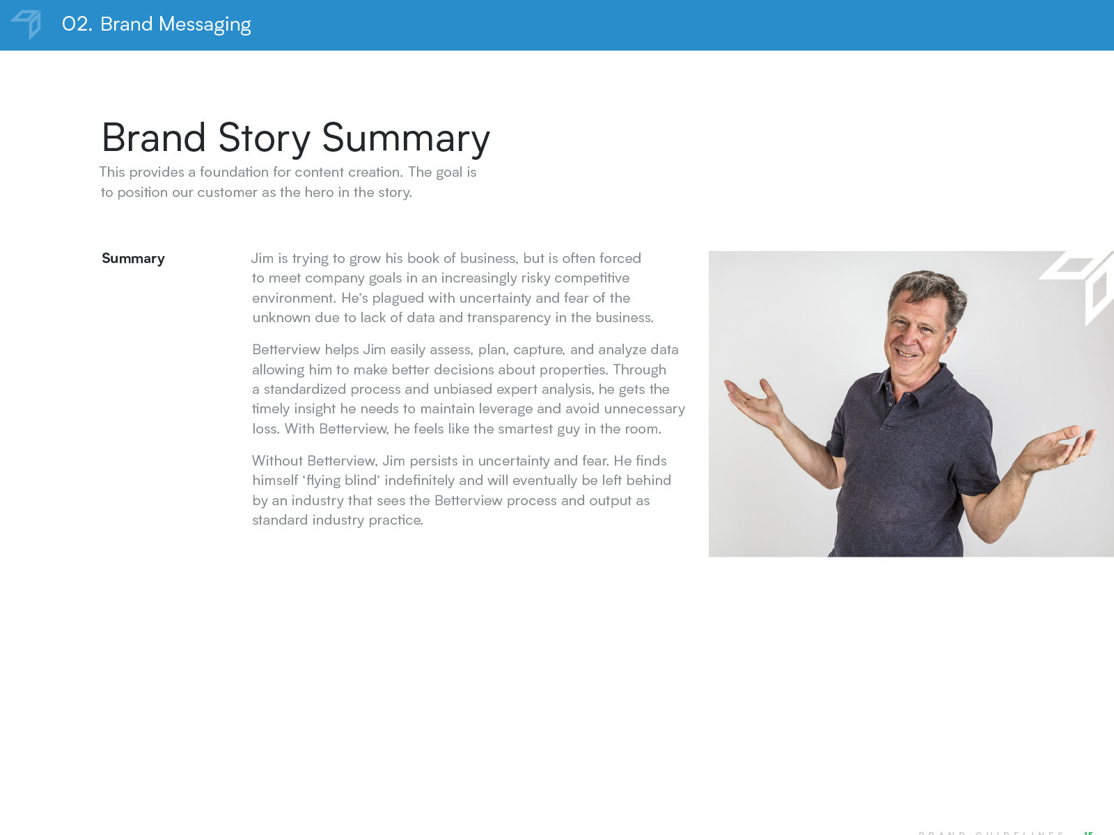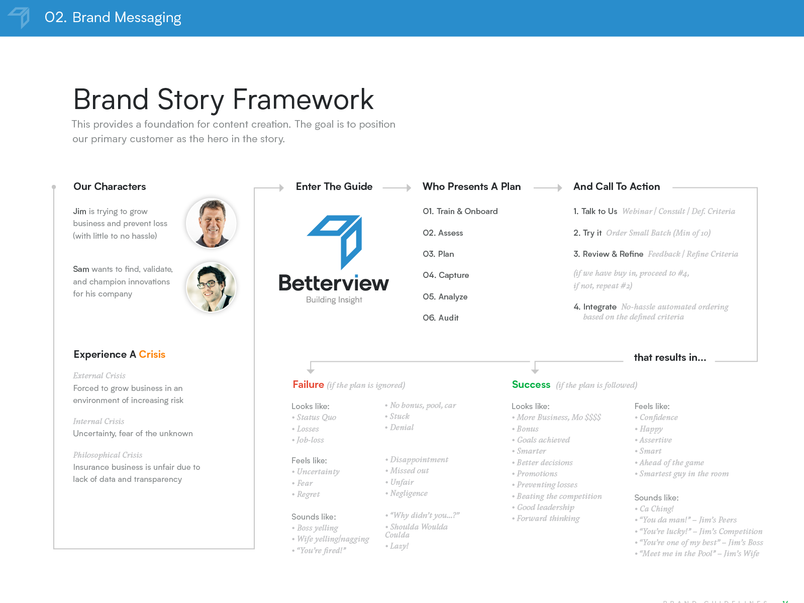 Up to this point, Betterview had been talking alot about themselves, but the customer was no where to be found. I helped them craft a story framework that put their customer at the center of the story, ultimately becoming the hero.
